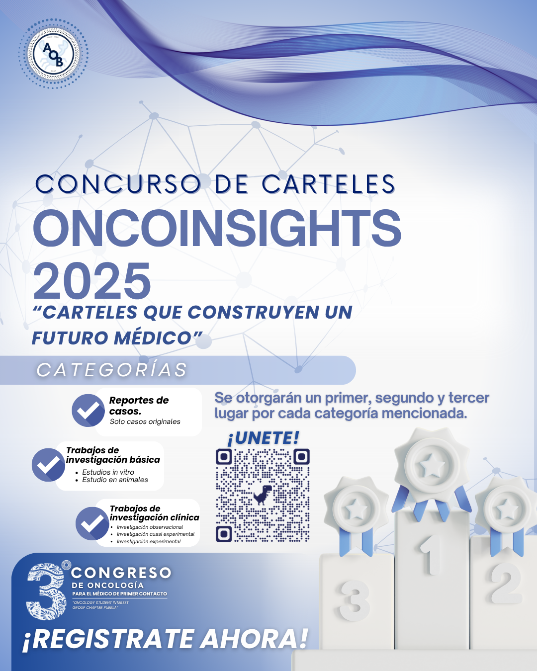 - Concurso de carteles - OncoInsights 2025: carteles que construyen un futuro médico, donde se presentarán investigaciones e iniciativas innovadoras en oncología, con categorías para principiantes y participantes con experiencia.